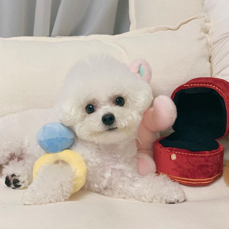 TEXTURA DE VELUDO - Com sua textura de veludo confortável, o anel de noivado é o brinquedo ideal para seu amigo.